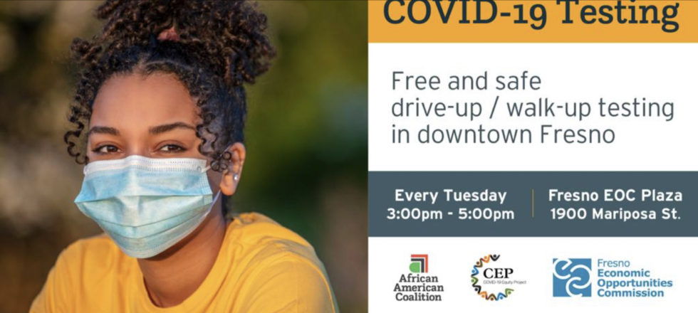 Free COVID-19 Testing every Tuesday 3:00 p.m. — 5:00 p.m. at Fresno EOC Plaza 1900 Mariposa St. Downtown Fresno
