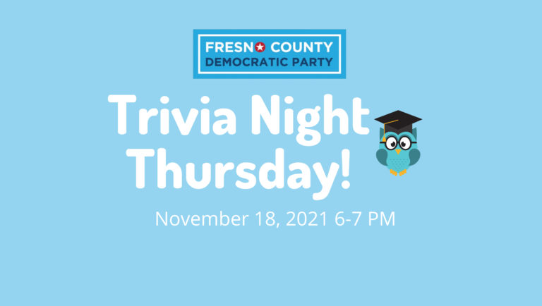 Fresno County Dems Trivia Night Thursday! https://www.mobilize.us/mobilize/event/426575/ Community Event · Hosted by Fresno County Democratic Party Time Thursdays6 – 7pm PST Thu, Feb 3, 6:00pm–7:00pm PST Thu, Feb 17, 6:00pm–7:00pm PST Thu, … Continue reading Trivia Night Thursday